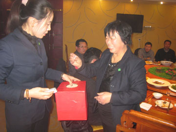2013年12月28日上午,泰安分公司在職場(chǎng)內(nèi)舉辦了年度、月度績(jī)優(yōu)人員表彰會(huì)。中午王明剛總舉辦了隆重的英雄宴。宴會(huì)上增加了抓獎(jiǎng)活動(dòng),大獎(jiǎng)是平板電腦。表彰會(huì)和宴會(huì)的氛圍非常活躍。